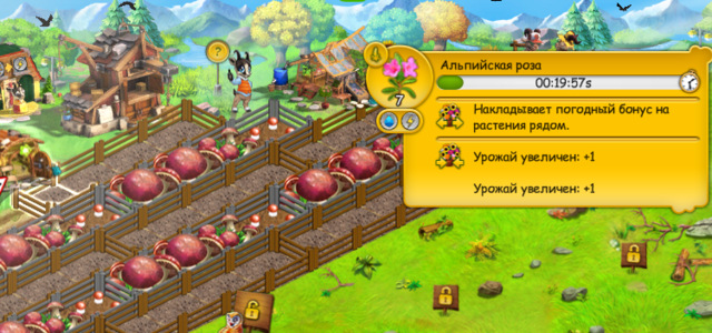 Если свободных полей рядом нет, буря ничего не растянет. Буря применяется и к созревшим, и к уже растущим, и к только что посаженным, при условии, что рядом есть свободное место. Действует как удобрение «Разрастание» - то есть время созревания последнего поля в грядке + базовое время (время созревания первого поля в грядке).